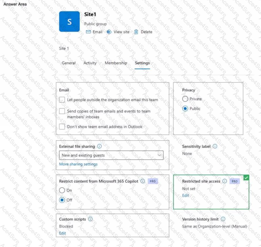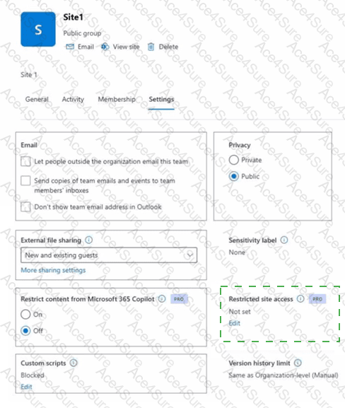 You have a Microsoft SharePoint site named Site1 and a security group named Group1.