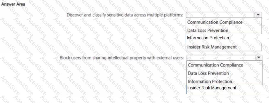Which Microsoft Purview solution should you use for each requirement? To answer, select the appropriate options in the answer area.