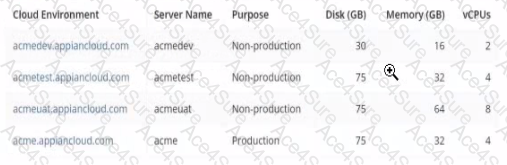 Review the specs for four environments in the following image.