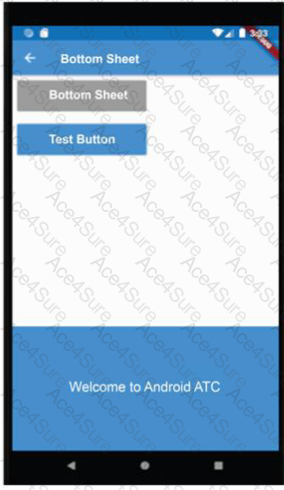 Assume that you designed a Flutter app as illustrated in the image of this question. When you tapped the "Bottom Sheet" button, you got a bottom sheet including the text "Welcome to Android ATC".