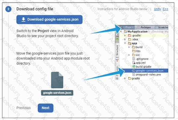 While configuring your Android app on Firebase web site, you should download the google- services.json file from Firebase web site and add it to your Android app files as illustrated in the image of