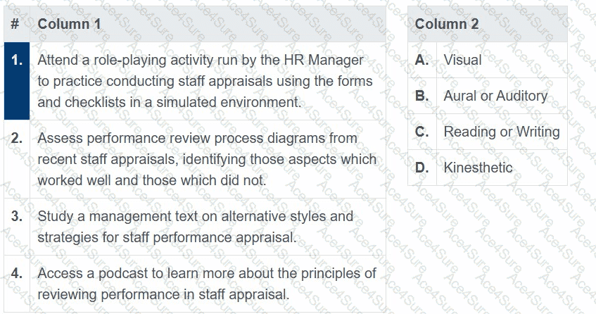 Column 1 is a list of learning activities that could be used to develop the staff.