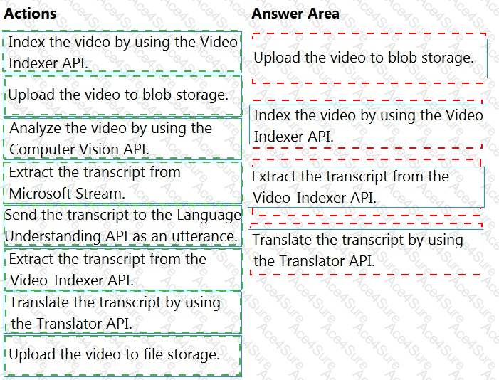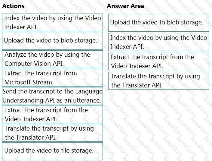 Which four actions should you perform in sequence? To answer, move the appropriate actions from the list of actions to the answer area and arrange them in the correct order. (Choose four.)