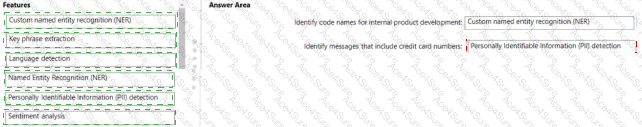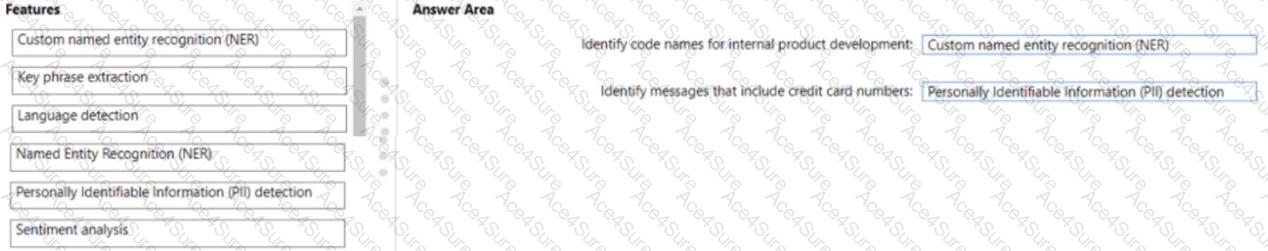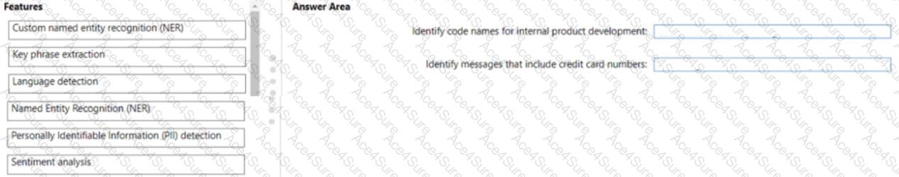 Which Azure Cognitive Service for Language feature should you use for each requirement? To answer, drag the appropriate features to the correct requirements. Each feature may be used once, more than once, or not at all. You may need to drag the split bar between panes or scroll to view content