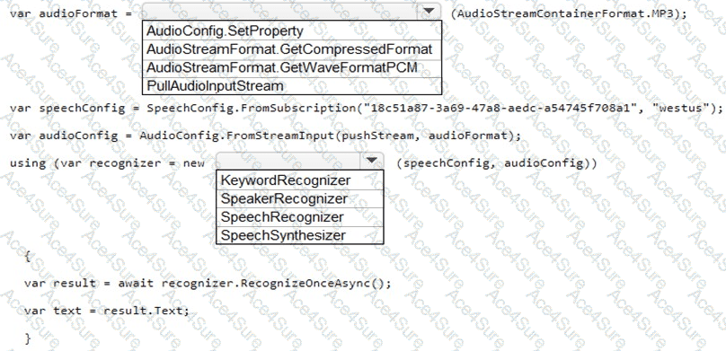 How should you complete the code? To answer, select the appropriate options in the answer area.