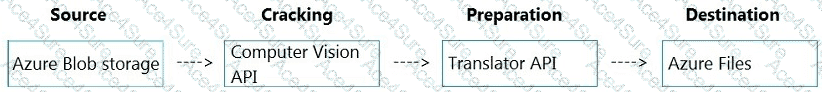 How should you complete the skillset design diagram? To answer, drag the appropriate services to the correct stages. Each service may be used once, more than once, or not at all. You may need to drag the split bar between panes or scroll to view content.