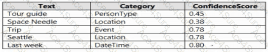 The text analyzed is: "Our tour guide took us up the Space Needle during our trip to Seattle last week."