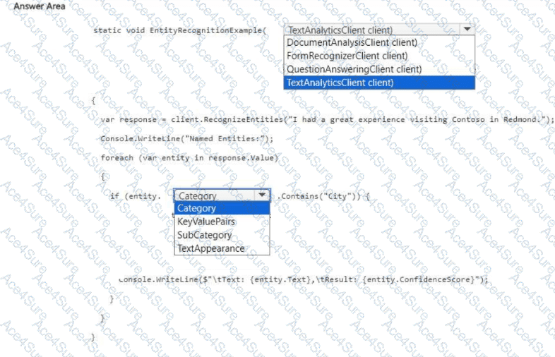 You are building an app that will identify city names in each document by using Azure Al Language.