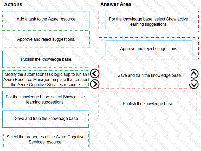 Which four actions should you perform in sequence? To answer, move the appropriate actions from the list of actions to the answer area and arrange them in the correct order.