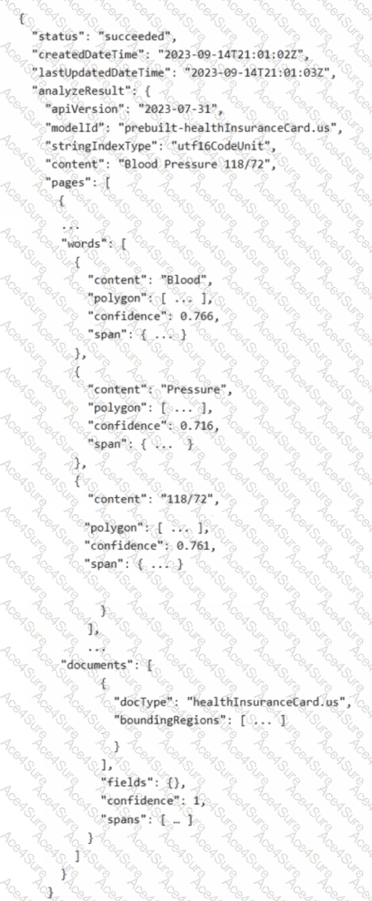 You have an app named App1 that uses Azure Al Document Intelligence to analyze medical You have an app named App1 that uses Azure Al Document Intelligence for patients. You send a request to App1 and receive the following response.