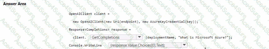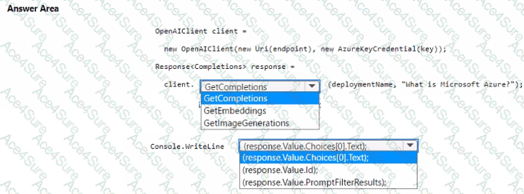 How should you complete the code? To answer, select the appropriate options in the answer area