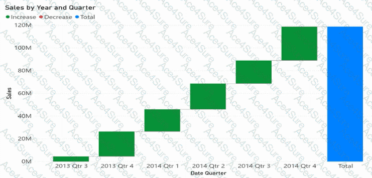 You need to create a visualization of running sales totals per quarter as shown in the following exhibit.