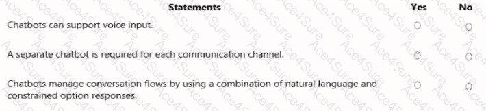 For each of the following statements, select Yes if the statement is true. Otherwise, select No.