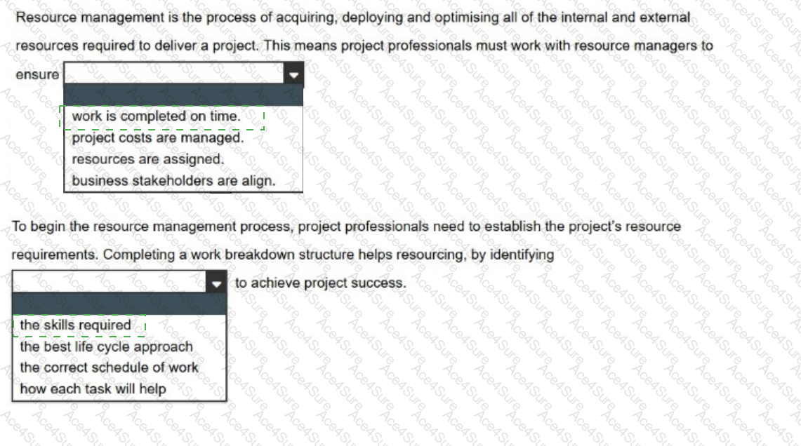 Select the correct options from the drop-down lists: