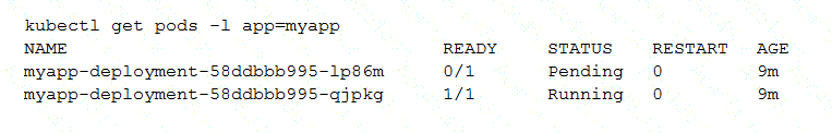 You check the status of the deployed pods and notice that one of them is still in PENDING status: