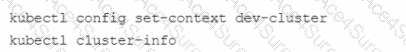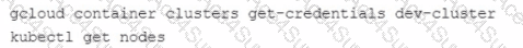 When you run the Kubect1 get nodes command, you only see the nodes from prod-cluster Which commands should you run to check the node status for dev-cluster?