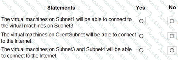 You are evaluating the connectivity between the virtual machines after the planned implementation of the Azure networking infrastructure.