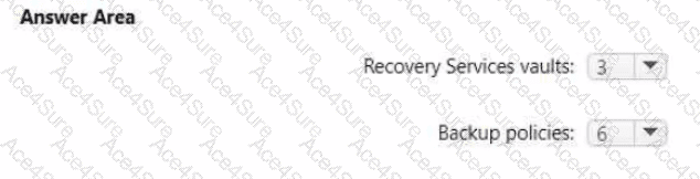 What is the minimum number of Recovery Services vaults and backup policies you should create? To answer, select the appropriate options in the answer area.