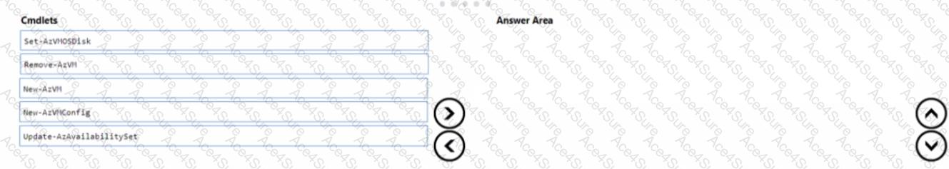 Which four PowerShell cmdlets should you run in sequence? To answer, move the appropriare actions from the list of actions to the answer area and arrange them m the correct order.