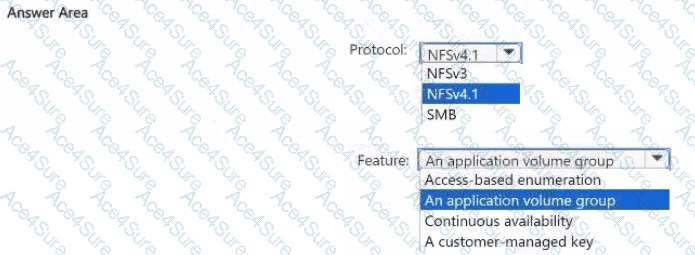 Which protocol and feature should you configure for the deployment? To answer, select the appropriate options in the answer area. NOTE: Each correct selection is worth one point.