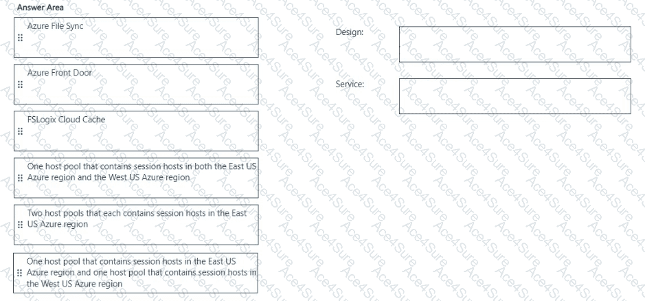 Which host pool design and which service should you configure to meet the disaster recovery requirements? To answer, drag the appropriate solution to the correct requirements. Each solution may be used once, more than once, or not at all. You may need to drag the split bar between panes or scroll to view content