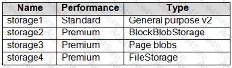 You have an Azure subscription that contains the storage accounts shown in the following table.