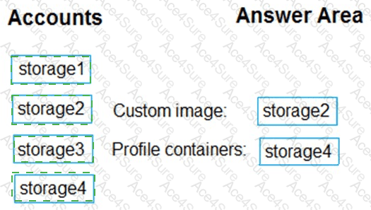You need to recommend which storage accounts to use for the custom image and the profile containers. The solution must meet the following requirements: