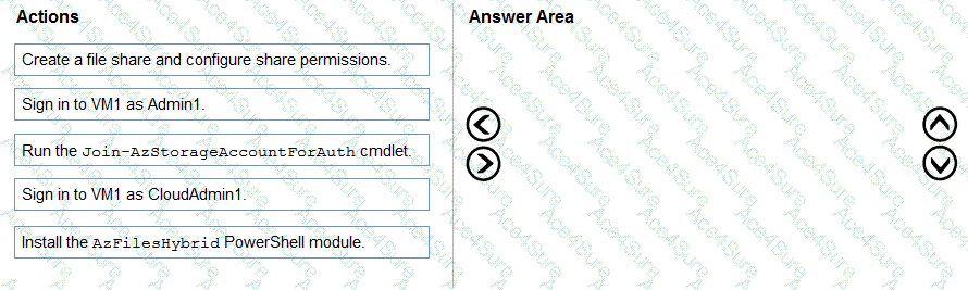 Which four actions should you perform in sequence? To answer, move the appropriate actions from the list of actions to the answer area and arrange them in the correct order.