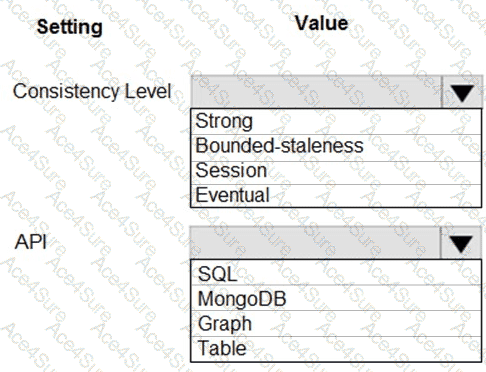 Which settings should you use? To answer, select the appropriate options in the answer area.