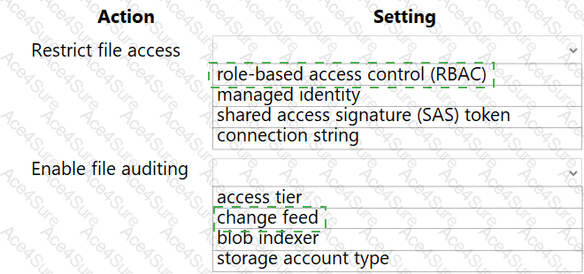Which Azure Blob storage settings should you use? To answer, select the appropriate options in the answer area.