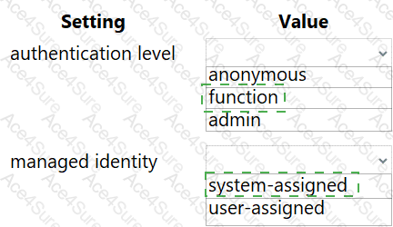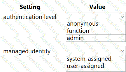 Which configuration values should you use? To answer, select the appropriate options in the answer area.