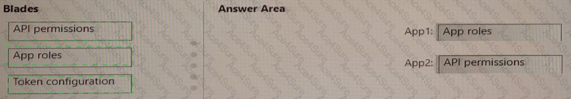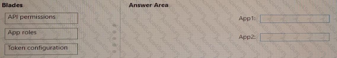 Which blade should you use to modify each app registration? To answer, drag the appropriate blades to the correct app registrations. Each blade may be used once, more than once, or not at all. You may need to drag the split bar between panes or scroll to view content.