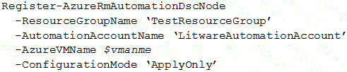To resolve the current technical issue, what should you do to the Register-AzureRmAutomationDscNode command?