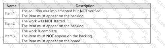 You are using Agile process methodologies and Azure Boards in Azure DevOps. You import the work items shown in the following table.