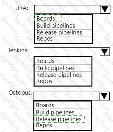 Which Azure DevOps service should you use to replace each tool? To answer, select the appropriate options in the answer area.