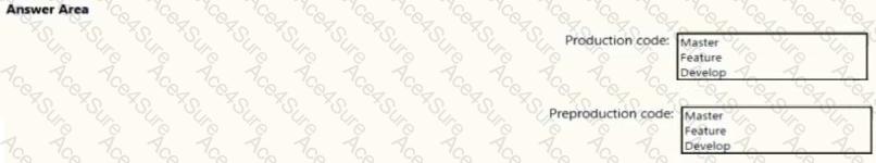 You need to identify which branch types are used for production code and preproduction code in the strategy.