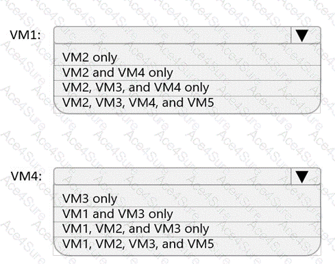Which virtual machines can VM1 and VM4 ping successfully? To answer, select the appropriate options in the answer area.