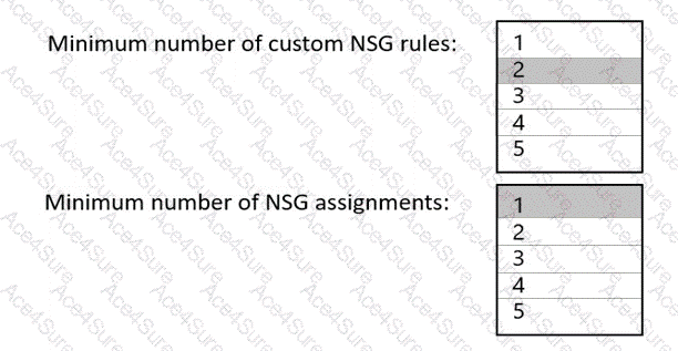 What is the minimum number of custom NSG rules and NSG assignments required? To answer, select the appropriate options in the answer area.
