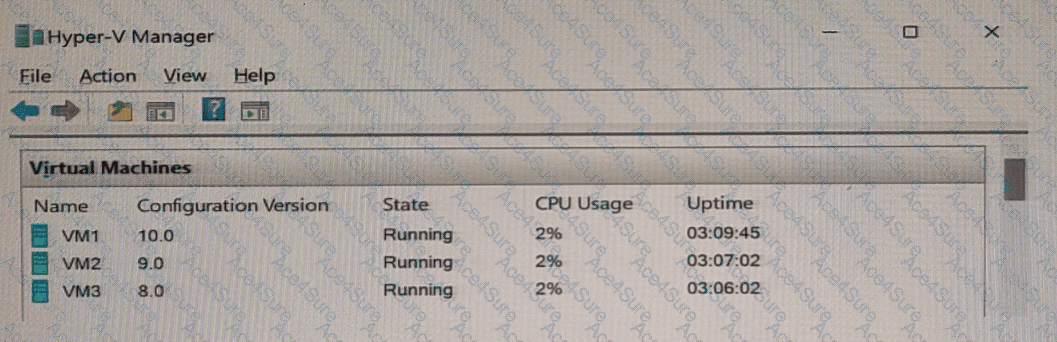 You have a server named Server1 that has the Hyper-V server role installed. Server1 hosts the virtual machines shown in the following exhibit.