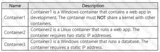 You have a Windows Server container host named Server! that has a single disk. On Server1, you plan to start the containers shown in the following table.
