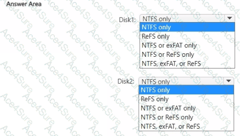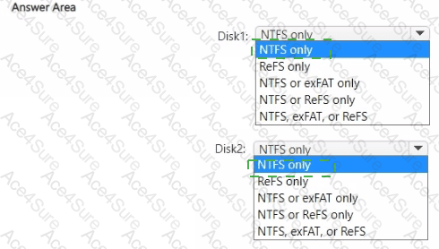 Which type of file system should you use for each drive? To answer, select the appropriate options in the answer area.