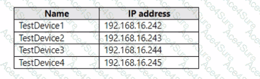You have four testing devices that are configured with static IP addresses as shown in the following table.