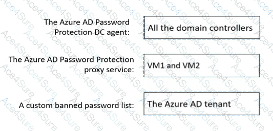 Where should you configure the components for Azure AD Password Protection? lo answer, drag the appropriate components to the correct locations. Each component may be used once, more than once, or not at all. You may need to drag the split bar between panes or scroll to view content.
