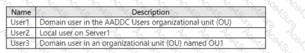 Your network contains a Microsoft Entra Domain Services domain named sk230128outlook.onmicrosoft.com. The domain contains a server named Server1 that runs Windows Server.