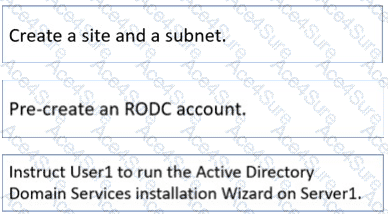 You plan to deploy a read only domain controller (RODC) to a new datacenter on a server named Server1. A user named User1 is a member of the local Administrators group on Server1.