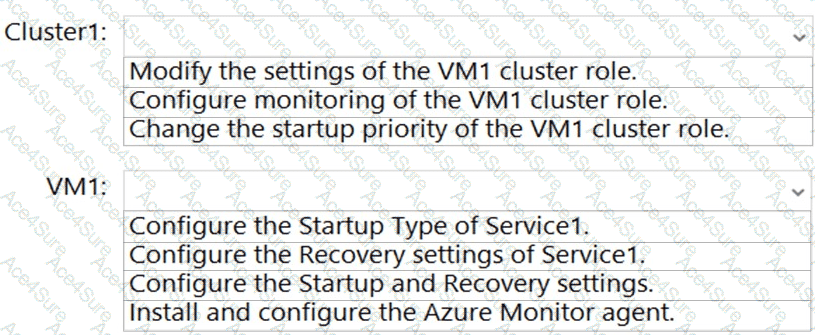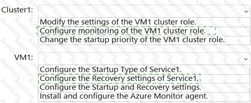 You need to fail over VM1 automatically to a different node when a service named Service1 on VM1 fails.
