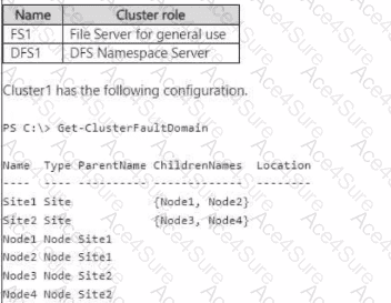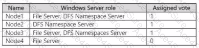 You have a Windows Server failover cluster named Cluster1 that has a cloud witness and the nodes shown in the following table.