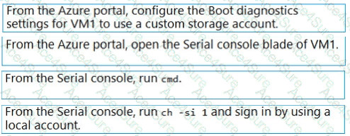 You need to run a PowerShell cmdlet on VM1 by using the Azure Serial Console.