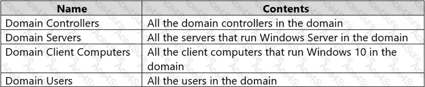Your network contains an Active Directory Domain Services (AD DS) domain named contoso.com. The domain contains the organizational units (OUs) shown in the following table.