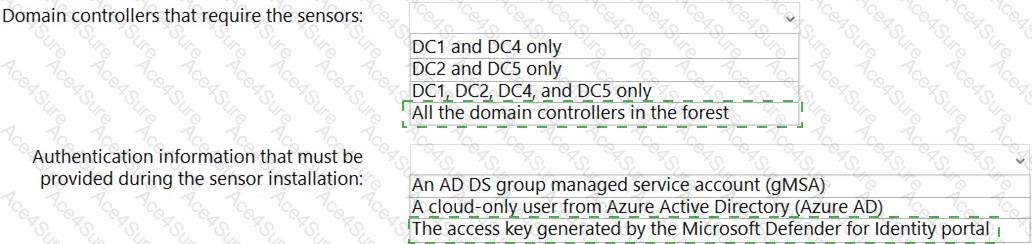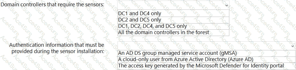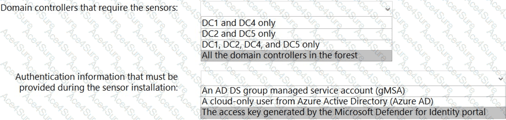 You need to install the sensors on the minimum number of domain controllers. The solution must ensure that Defender for Identity will detect all the security risks in both the domains.